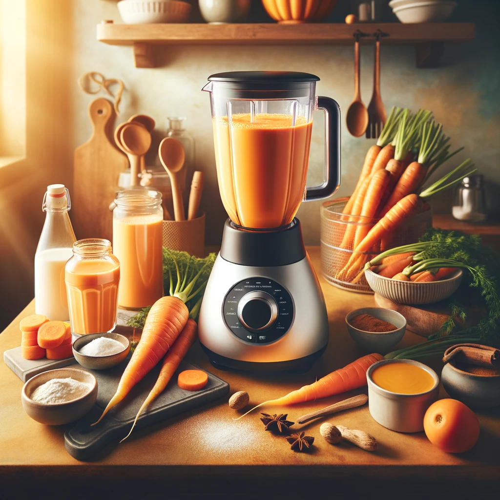- 조각낸 당근을 블렌더에 넣고 우유를 부어줍니다.