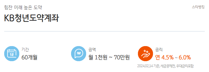 • 가입 방법: KB스타뱅킹 또는 영업점을 통해 간편하게 가입할 수 있습니다.